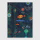 Dieses berühmte Gemälde zeigt der Bauhaus-abstrakte Künstler Paul Klee Modernismus mit abstrakten Fischen, die durch einen schwarz-blauen Ozean schwimmen. Eine abstrakte, expressionistische Grafik.