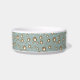 Pet bowl with a personalized dog name monogram in a cute script font paired with a pattern featuring ditsy paw print cookies and sugar dollops as a background. Check out our store for more matching items from this collection.