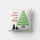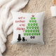 Ferienkissen für alle Liebhaber von Haustieren. Weihnachtsbaum aus Pfotendrucken, darunter Hund, Katze und Maus. "keine Kreatur rührte sich um", auf dem Kissen geschrieben. Die Rückseite des Kissens ist rot mit verstreuten weißen Pfotendrucken.