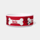 Weiße Hundebeine und Pfoten drucken mit dem Namen des Hundes auf rotem Hintergrund. Name ist bearbeitbar. Die Hintergrundfarbe kann geändert werden.