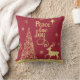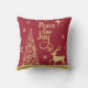 Ein wunderschönes Weihnachtskissen mit einem schönen Imitat Gold Glitzer Weihnachtsbaum mit Schneeflocken und einem Rentier auf rotem Hintergrund und einem Gold Glitzer Script mit "Peace Liebe and Joy". Im Menü Personalisieren können Sie ihn mit Ihrem eigenen Familiennamen personalisieren oder löschen.