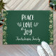 "Frieden, Liebe und Freude." Ein spielerisches visuelle von skurriler, handgeschriebener Typografie und Champagner, antiken Goldschneeflocken und Konfetti-Punkten vor dunklem Jäger-grünem Hintergrund hilft Ihnen, Weihnachten und Neujahr zu beginnen, wenn Sie Ihren Einstieg mit dieser stilvollen und einzigartigen personalisierten Namensmatte Weihnachts-Begrüßung verstärken. Passende und koordinierende Karten, Umschläge, Aufkleber, Geschenkpackungen und andere Produkte sind auch in meiner "Christmas Peace, Liebe & Joy" Shop-Kollektion erhältlich. Was für eine tolle Art, um diese festliche Saison zu feiern und alle, die in Ihren Wohnsitz eintreten willkommen zu heißen! Geben Sie einfach den Namen Ihrer Wahl ein, und Sie können diese Adresse ganz einfach personalisieren. Bitte schicken Sie mir eine Nachricht mit Fragen oder Wünschen.