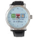 Uhr, Vintage Männeruhr mit schwarzem Lederarmband