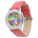 Uhr, Kinderuhr aus Edelstahl mit rosa Lederarmband