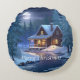 Peaceful Cabin in Winter Forest Rundes Kissen