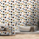 Dieser schöne Wallpaper ist mit Polka-Punkten in Pfirsich, Gold, Schwarz und Streifen ausgestattet. Die perfekte Akzent-Ergänzung zu Ihrer Wohngestaltung.