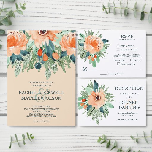 PEACH AND TEAL INVITATION COLLECTIONDesignt von Jeanette Herren