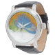 Uhr, Vintage Männeruhr mit schwarzem Lederarmband
