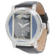 Uhr, Vintage Männeruhr mit schwarzem Lederarmband