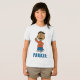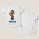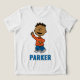 Say hello to fun with this classic custom Franklin t-shirt! Featuring the friendly Peanuts character giving a warm wave, this white tee is a cheerful addition to any little one’s collection. The bright orange shirt and blue striped pants add a delightful pop of color, perfectly complemented by your child’s name printed in matching bold blue letters. It is a wonderful choice for school days, playdates, or just sharing a love for the Peanuts gang. Let your child shine bright with their very own personalized piece of comic strip history!