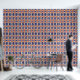 Abnehmbares Peel-Stick Artdeco Tiles Muster blaues orangefarbenes geometrisches Hintergrundbild. Ein tolles Gaumenprojekt für Mieter Hauseigentümer. Erstellen Sie ein personalisiertes Aussehen für Ihr Zuhause Condo Apartment Schlafzimmer oder Business. Die Wände sind mit Möbeln dekoriert. Erhältlich in texturierter und glatter Vinyl. Größe 2'x4' 2'x8' 2x10' 2'x12' und 2'x1' Uhr.