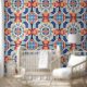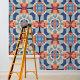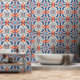 Peel Stick Blue Orange Geometric Tiles Muster Tapete