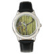 Uhr, Vintage Männeruhr mit schwarzem Lederarmband