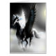 Ein Pegasus fliegt hoch über die glühenden Wolken auf einer moonlit Nacht frei der Sorgfalt und der Sorgen, die unten aus den Grund kommen können. Hinter ihm glüht der Vollmond hell und macht das Geschöpf mysteriös. Ist er ein weißer Pegasus, der in tiefe Höhepunkte und Schatten geworfen werden oder ein schwarzes Pferd mit Blendungspunkten der weißen Reflexion. Oder ist er in Wahrheit ein dappled Tier. So gesehen können wir nie wissen.