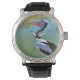 Uhr, Vintage Männeruhr mit schwarzem Lederarmband