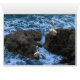 Umrahmt von den schroffen Seegangeln, sind zwei Pelikane auf großen Felsen aus dem Meer.