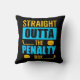 Das Penalty Box Hockey Kissen enthält Silhouette-Pucks und Hockey-Sticks mit Text, der Straight Outta die Penalty Box ausliest.