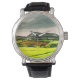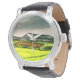 Uhr, Vintage Männeruhr mit schwarzem Lederarmband