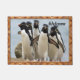 Sechs Pinguine, die entlang den Ozean auf dem sandigen Strand gehen. Mit einem großen Felsen und dem netten blauen Himmel des Babys. Diese Bodenmatte hat einen hölzernen Bodenrahmen. Der Text und die Textfarbe können Änderung an jeder möglicher Farbe sein, die Sie sie wollen, um mit dem kundenspezifischen Umbau zu sein.
