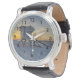 Uhr, Vintage Männeruhr mit schwarzem Lederarmband