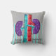 Pensioniertes Nephrologe-Nickerchen-Kissen mit künstlerischem Nierenentwurf und striped blauem und grauem Hintergrund. Zurück vom Kissen in koordinierenfarben.