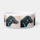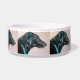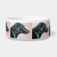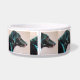 Aquarellmalerei eines pensiv schwarzen Hundes, eines Rettungshundes aus Puerto Rico, aufgedruckt auf einer Hundeschale. Weitere Hundebilder von Rachel M Brown finden Sie unter Dog-Paintings.com