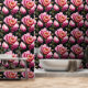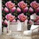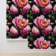 Ein wunderschönes, sich nahtlos wiederholendes Muster mit großen, hellrosa Blume in vollblütigem Set vor einem schwarzen Hintergrund mit kleinen dunklen Blattgrün um die Blüten. Diese kühne und elegante Landwiese inspiriertes Design hat ein zeitloses und elegantes Sommer / Frühling-Gefühl. Verwandeln Sie jeden Raum in ein prächtiges und majestätisches Gartendekorationsstück mit diesem Design, das für alle großen Räume geeignet ist, sei es als Wohnzimmer, Bad oder Schlafzimmer. Ideal für Geschäftsleute, englische und französische Hütten, Zuhause und Geschäftsleute.