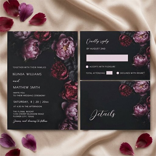 Red Purple 3D Flowers Dark Moody WeddingDesignt von Nina Baydur