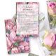 Vintager Retrostil in Aquarellfarbe Rosa Blume Thema Brautparty-Karte mit Aquarellbildern von Bouquet-Pionieren mit Grün. Elegante Kalligraphie-Handschrift, ideal für Frühjahr-, Sommer- oder Herbsthochzeiten.