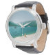 Uhr, Vintage Männeruhr mit schwarzem Lederarmband