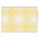 Dieses weiße Mandala sitzt auf einem hellgelben Hintergrund. Die Farben sind friedlich und fröhlich. Teil der Kowas Mandala Kollektion.