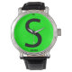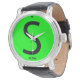 Uhr, Vintage Männeruhr mit schwarzem Lederarmband