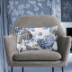 Ein blau-weiß Vintager botanischer Blumenkissen.