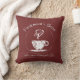 Vintages Blickkissen mit einem Kaffeemotiv. Burgunder-Kissen mit einem verwitterten Kaffeezeichenentwurf.