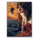Dies ist eine Reproduktion von "Perseus und Andromeda" von 1853 von Eugene Delacroix. Dies ist eine klassische Behandlung des populären griechischen Mythos von Perseus, der zur Rettung der Prinzessin von Joppa, Andromeda kommt. Er war fünfundfünfzig Jahre alt im Jahr dieser Schöpfung. Zwei Jahre zuvor hatte er mit seiner "Dantenbarque" auf das französische künstlerische Wort geplatzt und wurde Sofortführer der neuen Romantik-Bewegung. Im Gegensatz zu den perfektionistischen Akademikern führte Delacroix die Romantik bei der Verwendung ausdrucksstarker Pinselstriche, die von Rubens und Titan inspiriert wurden. Er favorisierte exotische Szenen und betonte eher Farbe und Bewegung als Klarheit der Linie. Obwohl seine Subjekte voller Leidenschaft und Gewalt waren, stellte er sie mit großer Klarheit dar. Dieses Gemälde ist ein Öl auf Leinwand und misst 17,24 x 12,68 Zoll. Es befindet sich in der Staatgalerie Stuttgart, Deutschland.