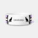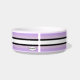 Weiße Keramik Katzenfutterschale mit vier Tonstreifen, Weiß und Schwarz als Grundlage, und jede koordinierende Farbe, die Sie bei der Option "Anpassen" wählen (innerhalb der personalize Option) erscheint in zwei Tönen .HAMbyWhiteGlove. Hier in einem Lavendel gezeigt.