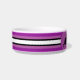 Weiße Keramik Katzenfutterschale mit vier Tonstreifen, Weiß und Schwarz als Grundlage, und jede koordinierende Farbe, die Sie bei der Option "Anpassen" wählen (innerhalb der personalize Option) erscheint in zwei Tönen .HAMbyWhiteGlove. Hier in einem hellen Rosa dargestellt.