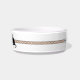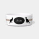 White Keramik Katzenfutter Schüssel hat zwei Katzengrafiken auf jeder Seite des schwarzen Namens Platzhalter. Auf jeder Seite befindet sich ein hellbeige Farbband, das durch ein knisterndes Kreuz-Design ergänzt wird. Ein sehr weiblicher und reglicher Look in einer Katzenschale . Entworfen von HAMbyWhiteGlove.