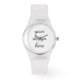 Stil: Die Sporty Pink Silicon Show ist das perfekte Geschenk für die sportlichen Girls, die Sie Liebe, diese klassische Sportuhr ist ein tolles Accessoire für jede Aktivität. Das Gesicht ist mit einem robusten und komfortablen Silikonuhr-Band gefertigt und kann mit Text und Designs an jede Persönlichkeit und jeden sportlichen Stil angepasst werden. Armbanduhr-Material für Frauen: Ständer: Silikongehäuse: Abmessungen: 1,18" Durchmesser Ständer: 9,5" x 0,79" Gehäuse: 1,57" Durchmesser Gewicht: 0,082 lb 3-Hand-Analogon Japan Quarz® Vollfarbiger, kundenspezifischer Druck auf der Vorderseite verfügbar in 2 Farben - Weißer und rosa Verschluss Dusch-sicher 1 Jahr Hersteller eingeschränkte Garantie Akku enthalten Dieses Produkt wird für Alter ab 13 Jahren empfohlen
