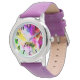 Uhr, Kinderuhr aus Edelstahluhr mit lila Lederarmband