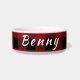 Dieses Haustier Keramik Essen oder Wasser Schüssel bietet einen klassischen roten und schwarzen Büffel kariert drucken. Personalisieren Sie diese Schüssel mit Ihrem Haustiernamen.