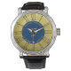 Uhr, Vintage Männeruhr mit schwarzem Lederarmband