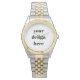 Stil: Unisex Zwei-Tone Armband Armbanduhr Perfekt für den Alltag, diese silber und goldfarbene Armbanduhr kann personalisiert zu Ihrem Stil passen. Fügen Sie Ihre Lieblings-Designs und Text, um es für eine phantastische Style-Anweisung anpassen! Material: Gurtband: Legierbarer Gehäuse: Legierte Abmessungen: Gesichtshaut: 1,16" Durchmesser Gurtband: 7,99" x 0,31" Gehäuse: 1,37" Durchmesser Gewicht: 0,148 lb 3-Hand-Analoges Japan Quarz® Vollfarbendruck auf Gesichtsfalte über Verschluss Wasserwiderstand: bis 3 ATM (98,4 ft) 1 Jahr Hersteller eingeschränkte Garantie Batterie enthalten Dieses Produkt wird für Alter ab 13 Jahren empfohlen