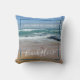Fügen Sie Ihrem Strandhaus mit diesem personalisierten Kissen Küstenstil hinzu. Das Design zeigt ein ruhiges Foto der blauen und weißen Wellen, blauer Himmel und goldener Sand der Küste Melbourne, in Australien. Der moderne, weiße Text ist anpassbar, sodass Sie Ihren eigenen Familiennamen hinzufügen können.