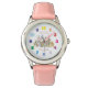 Kinderuhr aus Edelstahl mit rosa Lederarmband