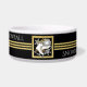 Das Design ist mit einem Eis-Skate über einem Schneeflocken-Wappen mit schwarzem und Imitat goldenem Glitzer-Hintergrund ausgestattet. Dieses elegante Wintersportdesign dient als coole, moderne und einzigartige Tierschale mit personalisiertem Text.