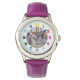 Uhr, Kinderuhr aus Edelstahluhr mit lila Lederarmband