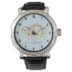 Wasserfarben-Design; Lächelnder Faden auf Baumzweig, hellblauer Hintergrund. Stellen Sie die Uhr mit Namen oder einer anderen speziellen Nachricht ein