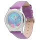 Uhr, Kinderuhr aus Edelstahluhr mit lila Lederarmband