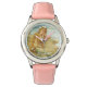 Kinderuhr aus Edelstahl mit rosa Lederarmband